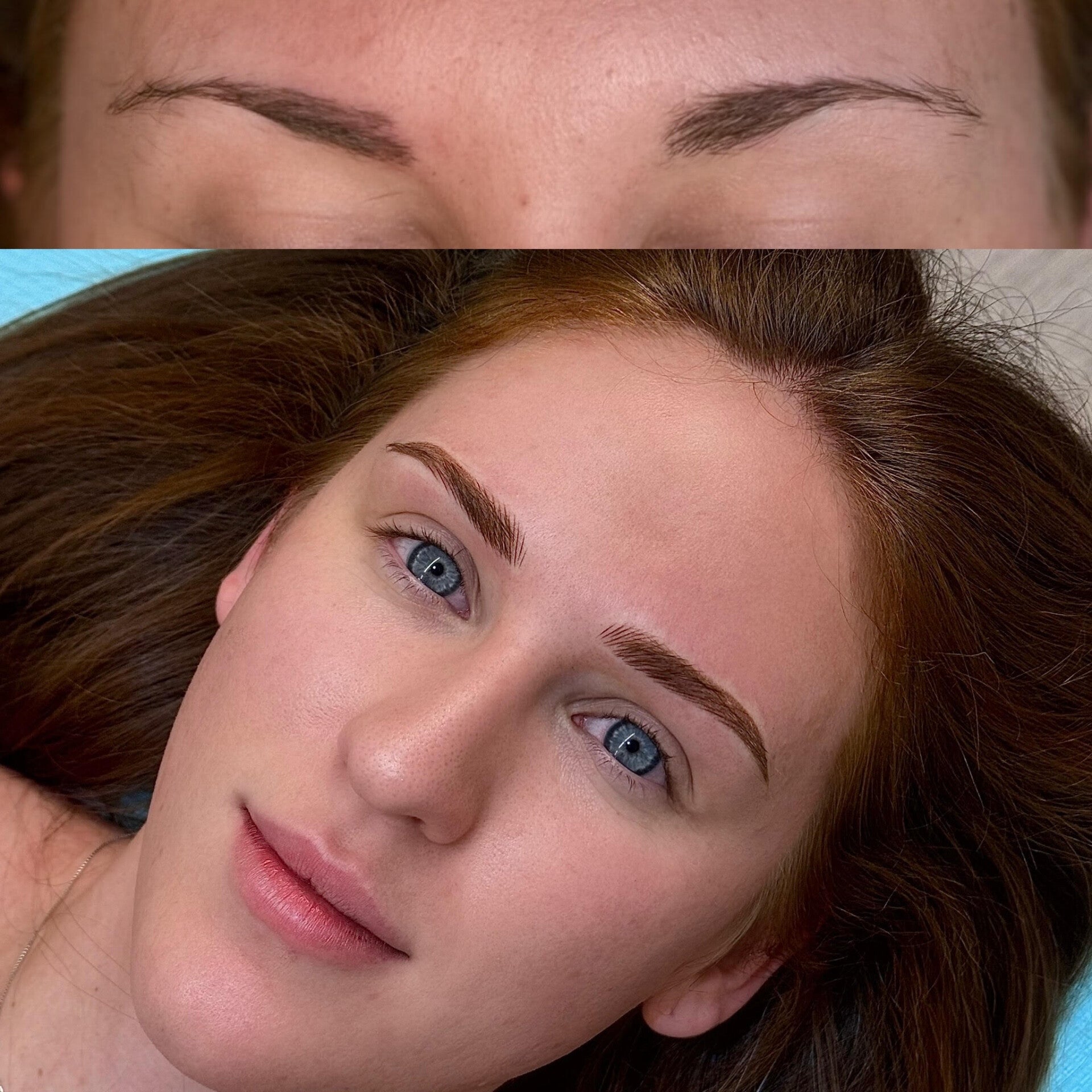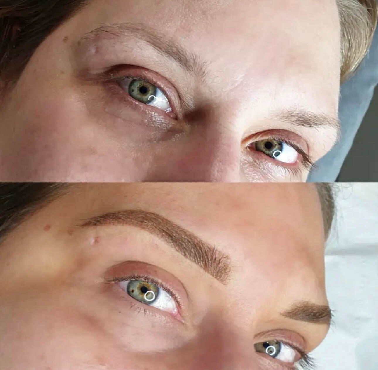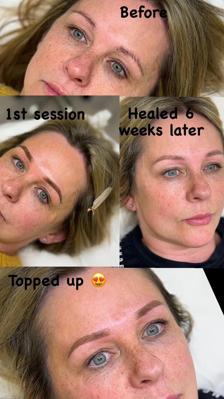 Ombre brows also known as powder brows are done with a tattoo machine and cartridge/needle, however it is not implanted as deep as an actual body tattoo and its done using coloured pigments not tattoo inks. It creates a powdered/ filled in eyebrow rather than hair strokes. The style is more defined and would give the appearance of a fuller tinted eyebrow. This is suitable for all skin types however I do find looks better on clients who already have natural eyebrow hair. After a 4-12 week top up these can last you anywhere up to 3 years.